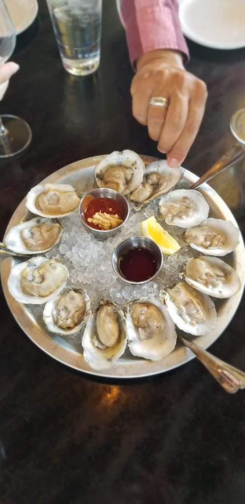 For this go ’round we decided to have happy hour over at Angelo’s for their options of, you guessed it, oysters, wine, and desserts!