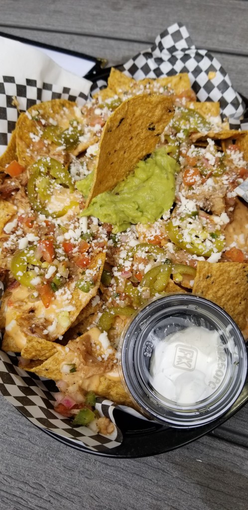 You have the option of protein topping & let me tell you that if you don’t go with the pulled pork, you’ll regret it! The queso has a nice smoky cheddar flavor with the perfect bite of heat. Not enough to torch your tongue but enough to make you know it’s there & keep you coming back for more. Mix that with the smoky, juicy pulled pork on top of those hefty chips, it has taken top spot for my favorite nachos. Hands down!